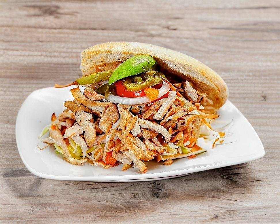 Plato Personal chica / Jamón,Mostaza,lechuga,zanahoria,tomate,cebolla,chile,aguacate,crema