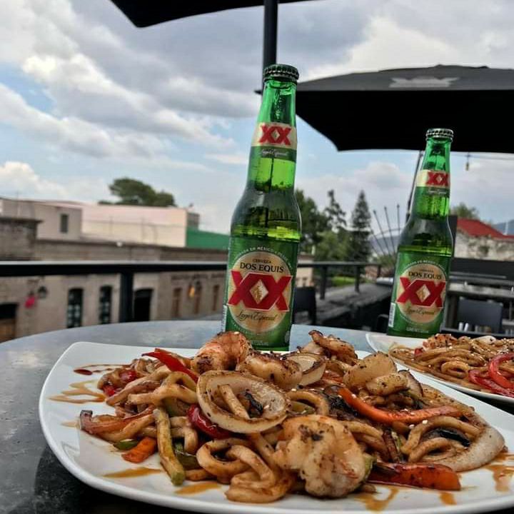 Queso crema, aguacate, camaron; por fuera pasta con arrachera flambeado, salsa de anguila y ajonjolí.