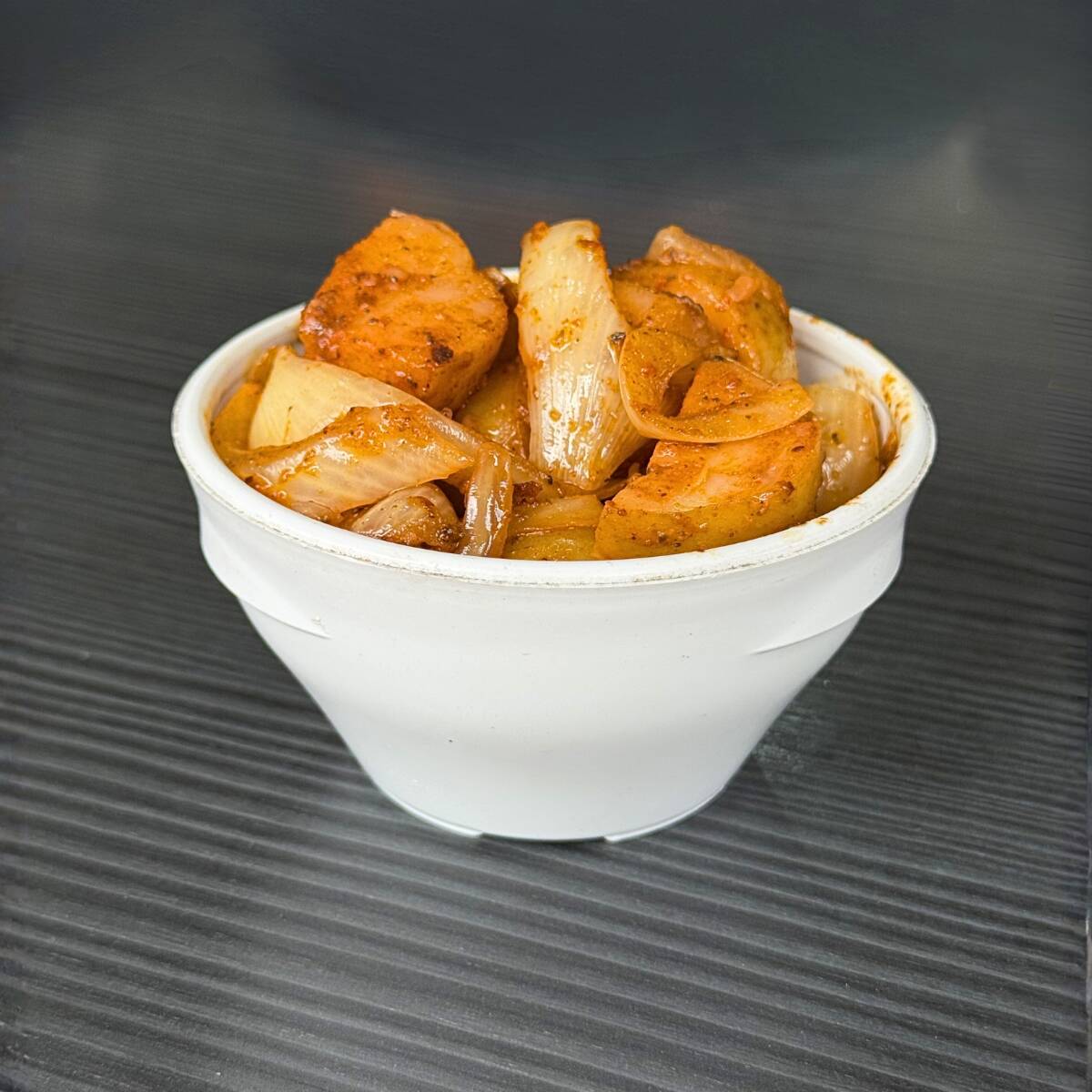 Deliciosas papas cambray bañadas en un adobo especial, cocinadas lentamente para que absorban todo el sabor de las especias. Suaves por dentro, llenas de sabor y con ese toque casero que las convierte en el acompañamiento perfecto para nuestro pollo rostizado. El equilibrio ideal entre sabor, tradición y antojo.