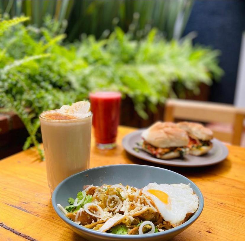 Chilaquiles bañados en salsa cremosa, cubiertos con queso oaxaca derretido, acompañados con frijoles refritos y huevo. Un Clásico cremoso.