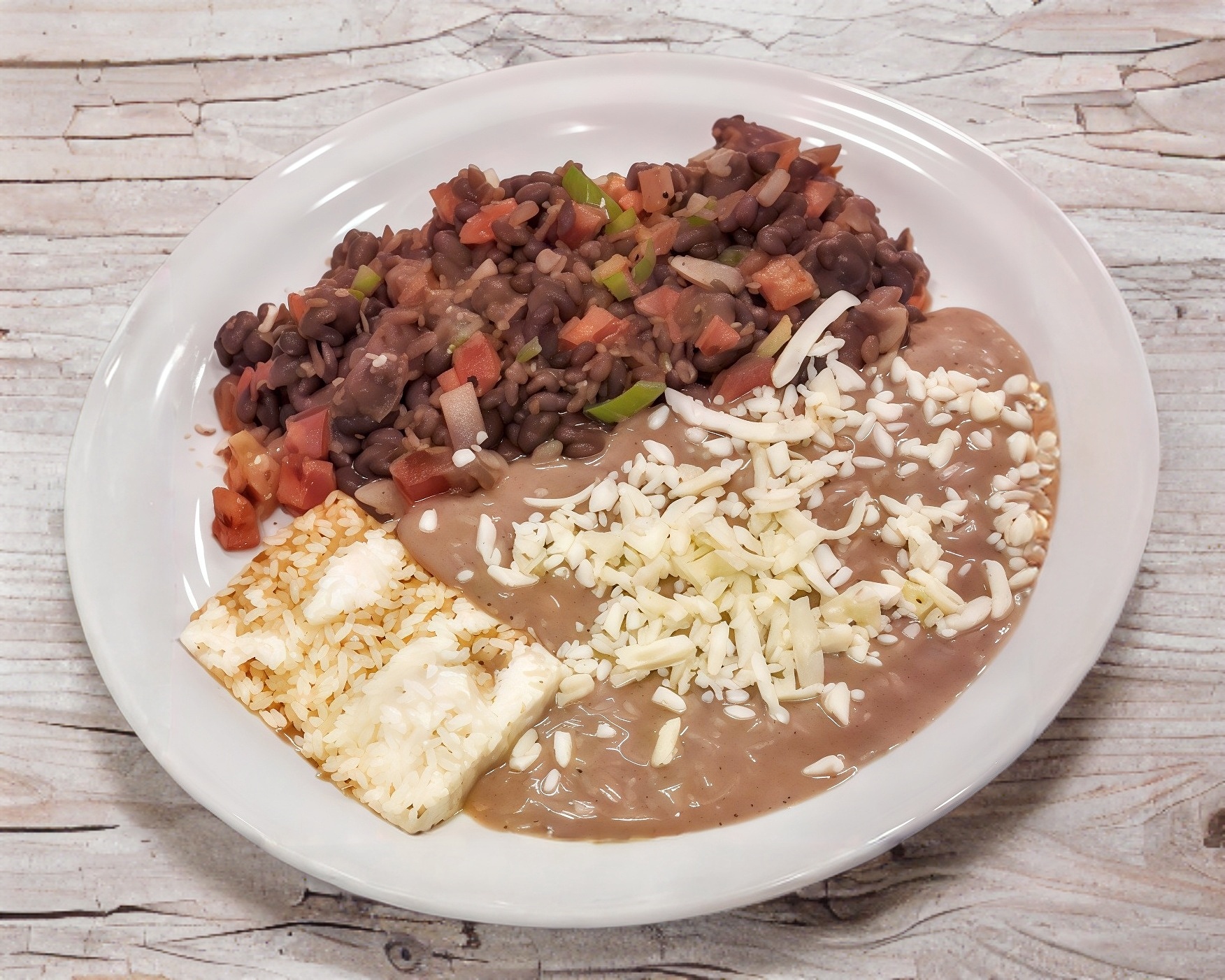 Incluye frijol, sopa fría y tortillas.