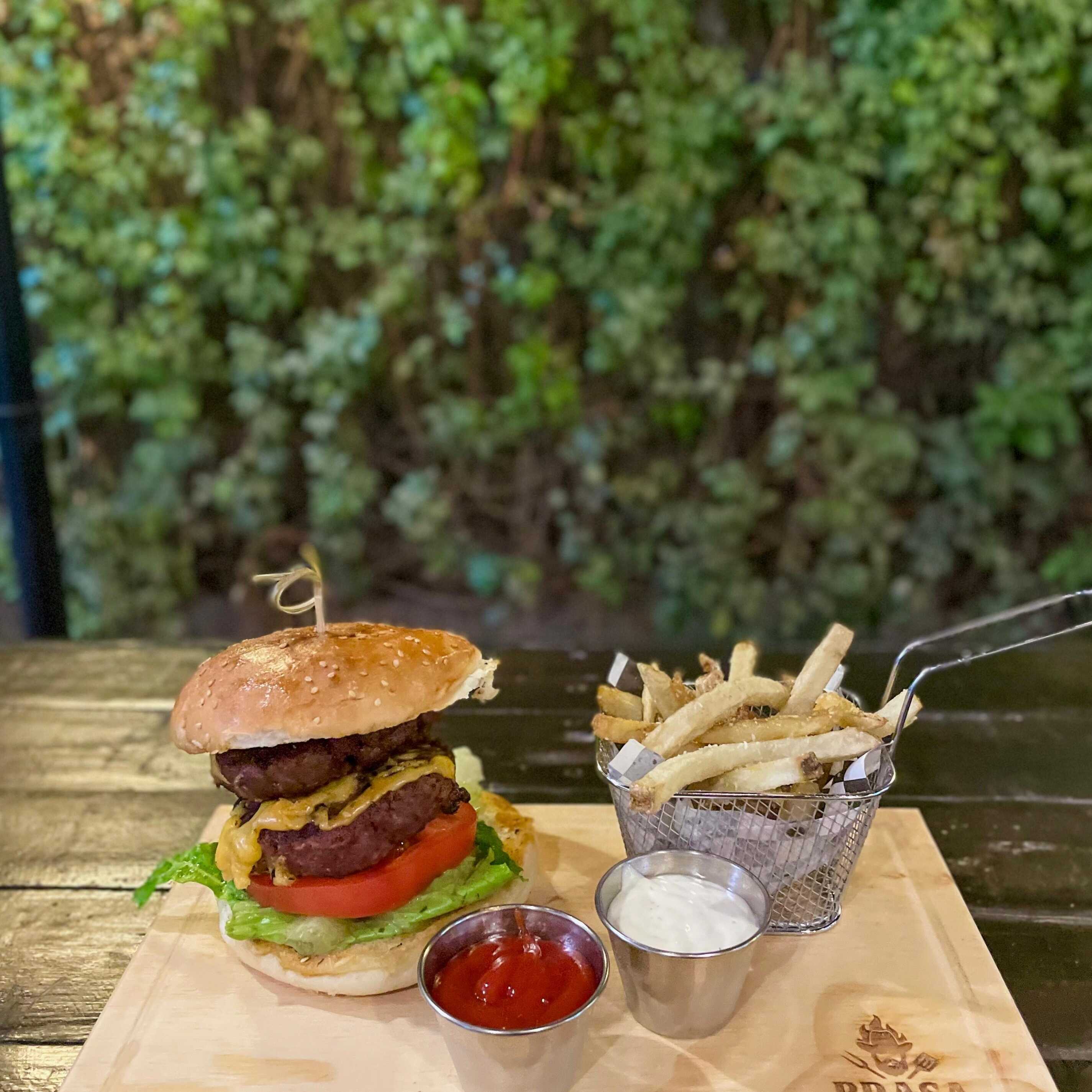 HAMBURGUESA BRASA ESPECIAL CON PAPAS