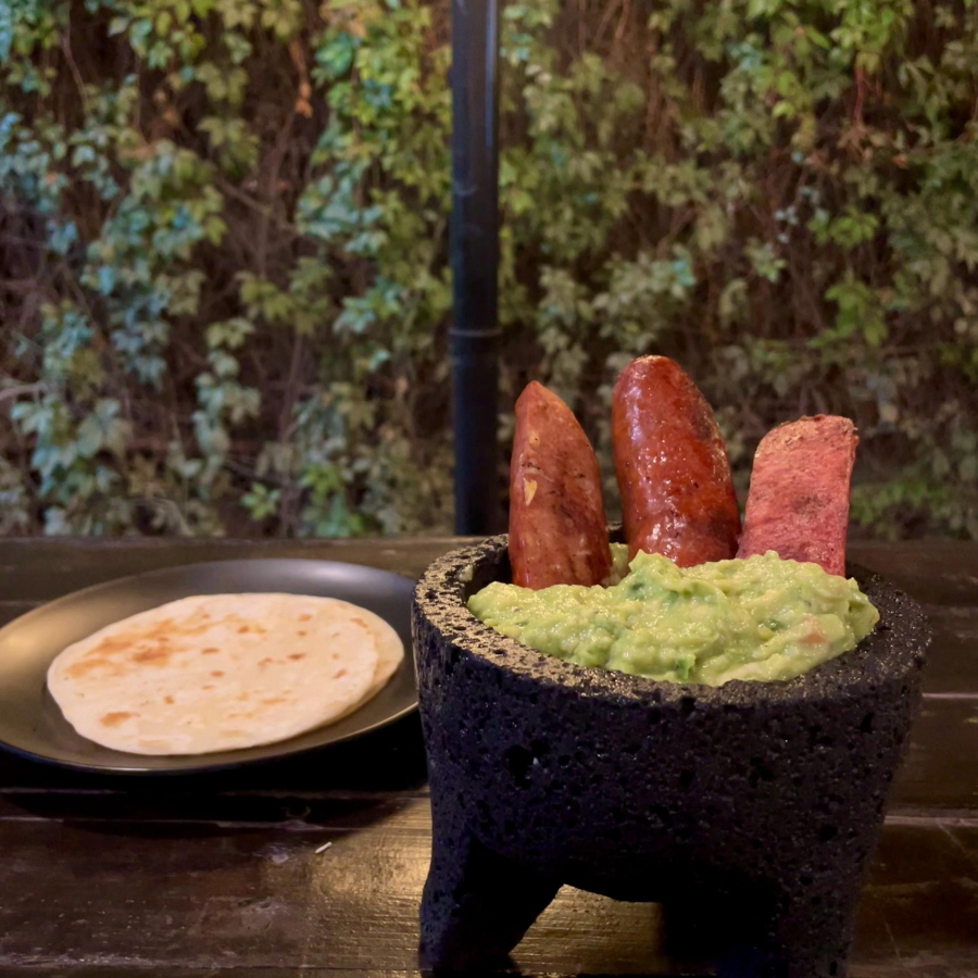 GUACAMOLE Y SALCHICHAS ASADAS