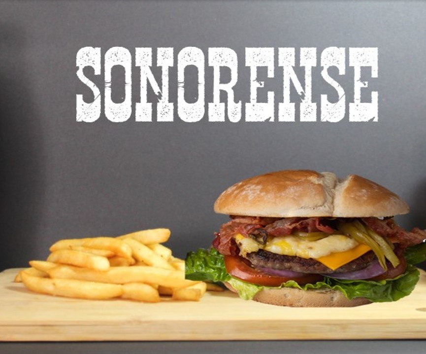 Pan artesanal con mayonesa, carne 100% sirloin (rellena de queso gouda), queso americano, queso gouda, lechuga, tomate y cebolla morada... acompañada de papas a la francesa.