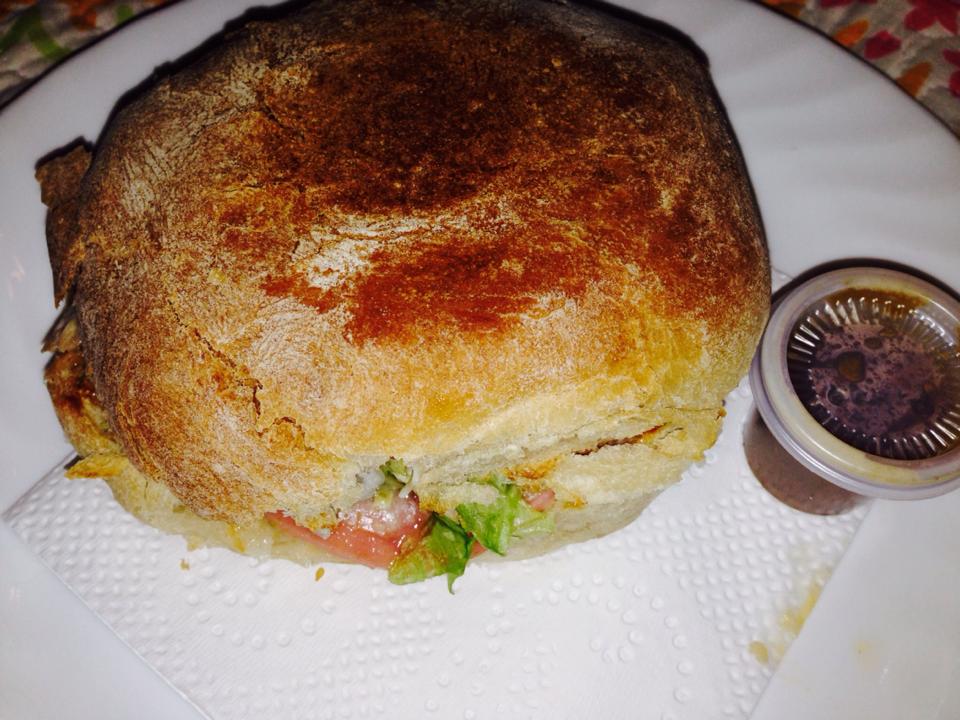 Carne, queso blanco, chile rescoldado, aguacate, lechuga, tocino y cebolla.
