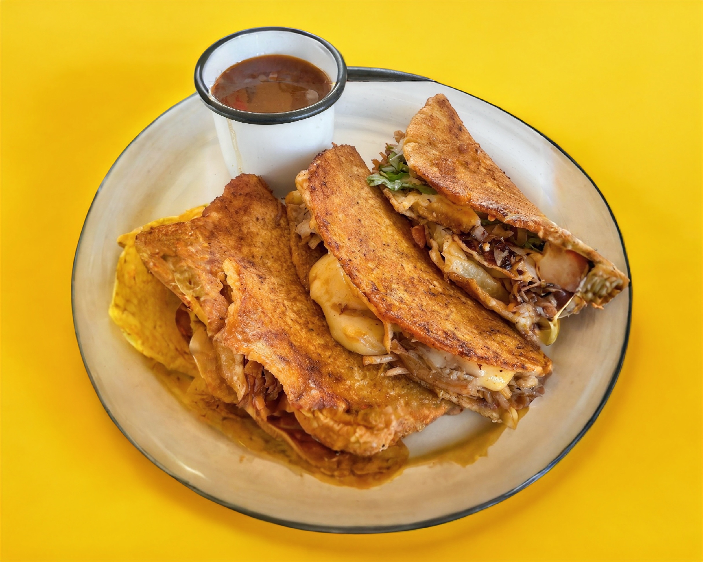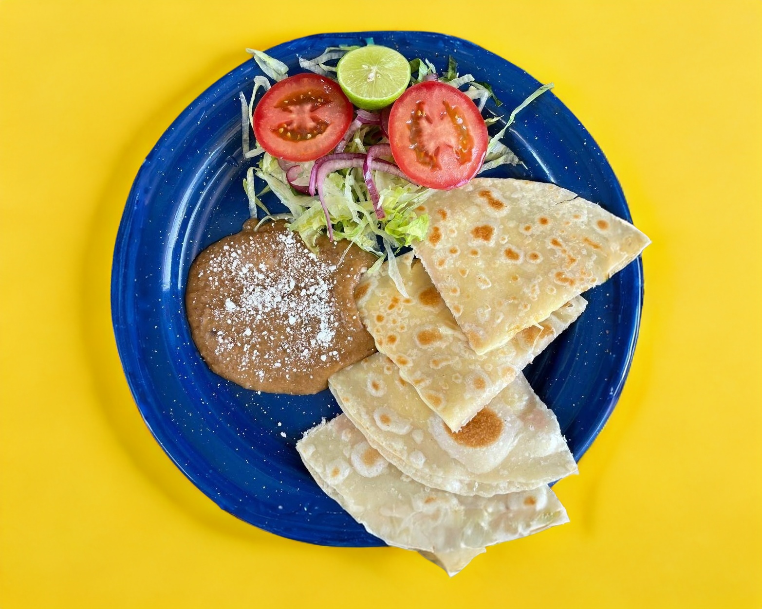 Orden de 3 quesadillas sencilllas de harina, acompañada de ensalada y frijol