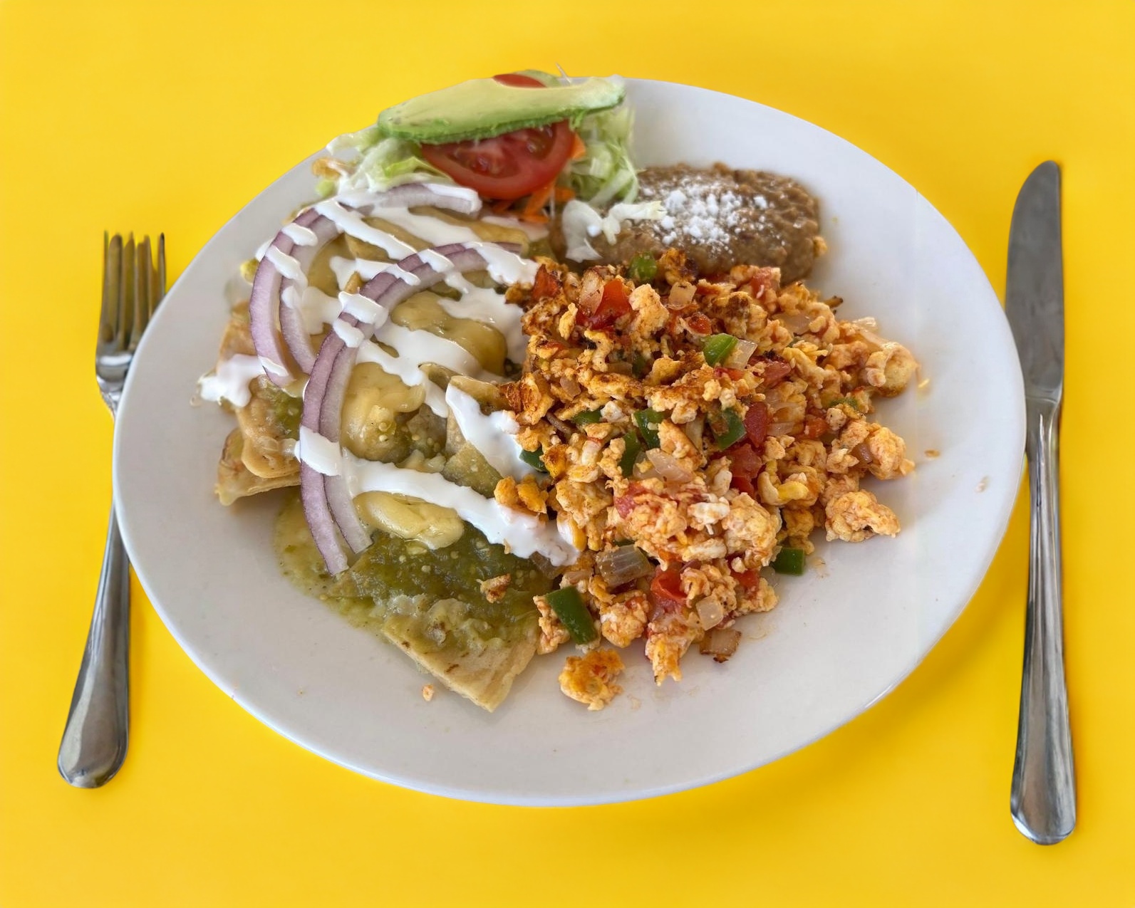 Selecciona tu huevo al gusto favorito, Tu desayuno incluye chilaquiles verdes o rojos, frijoles y tortillas