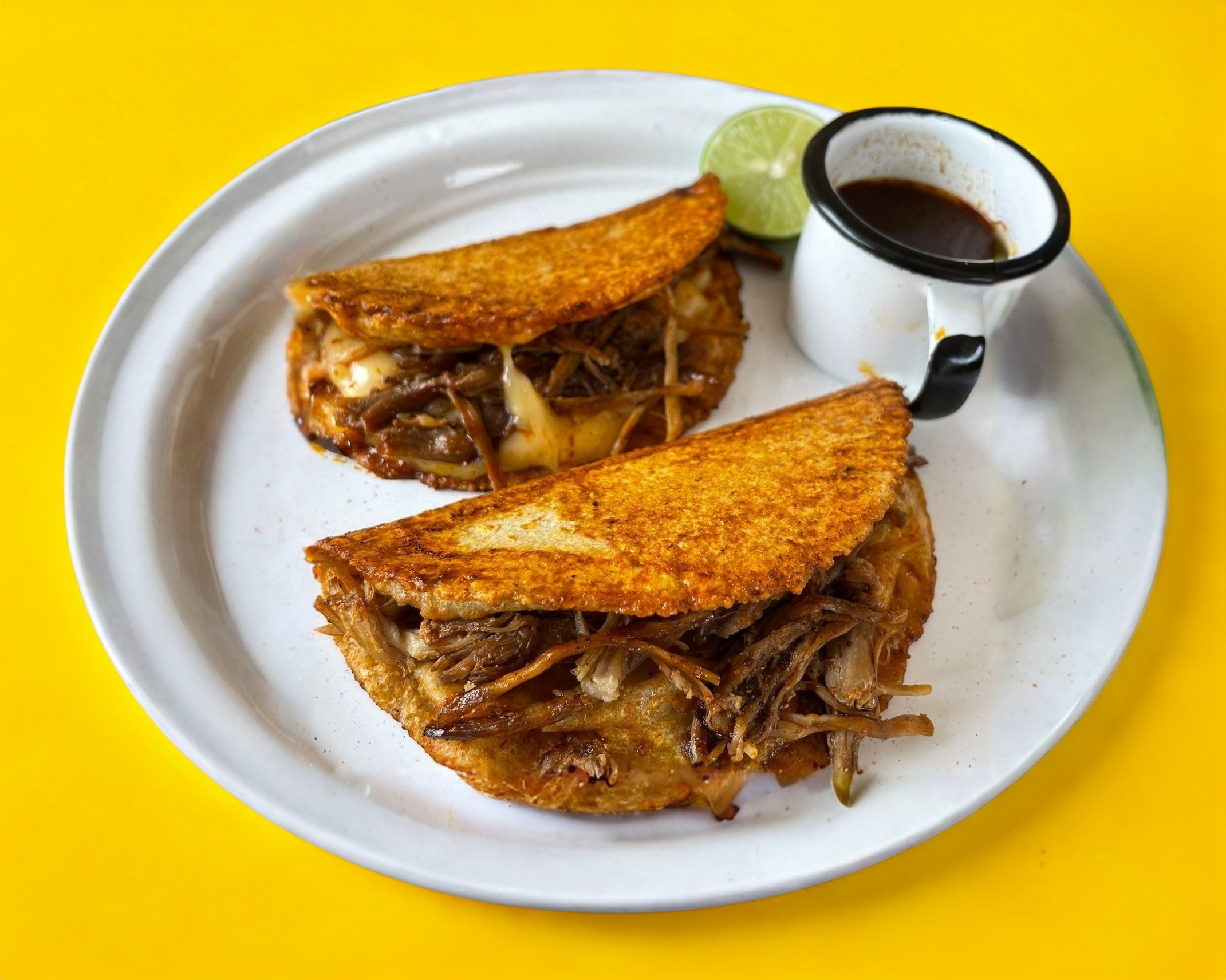 Orden de 3 tacos de birria de res, con verdura, salsa macha y consomé
