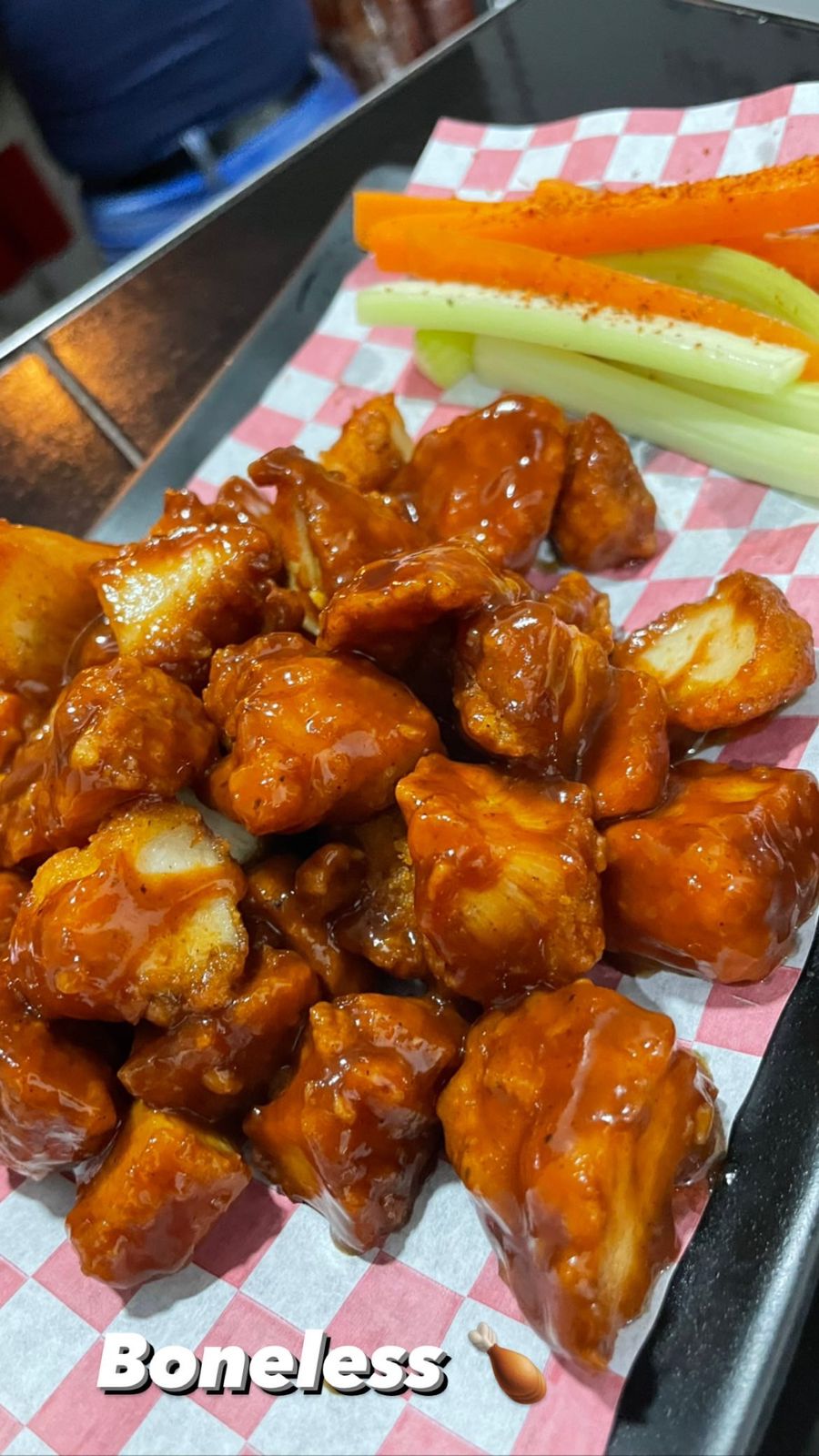 Tostitos con zanahoria, apio y ranch. BBQ, Búfalo o combinados.