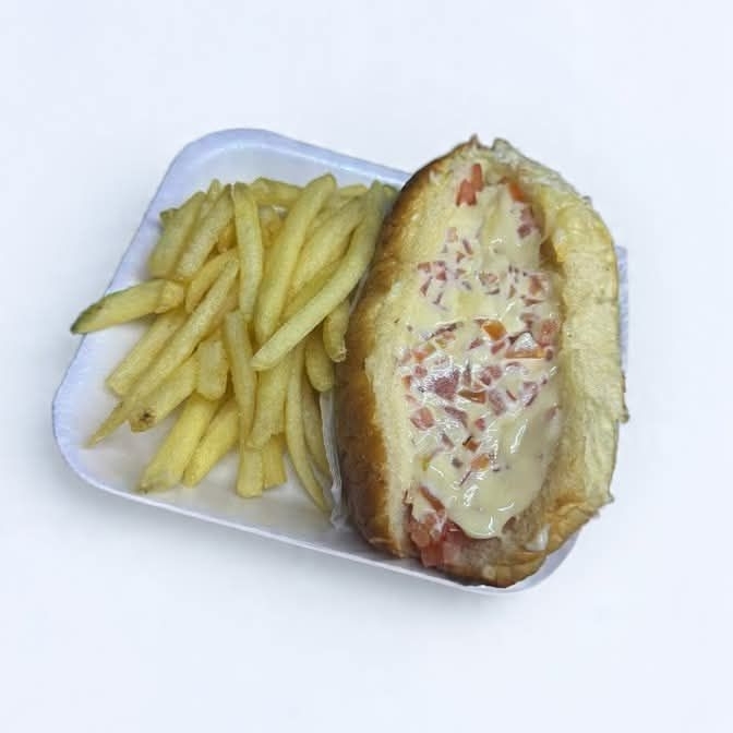 Orden de papas con 2 salchichas picadas