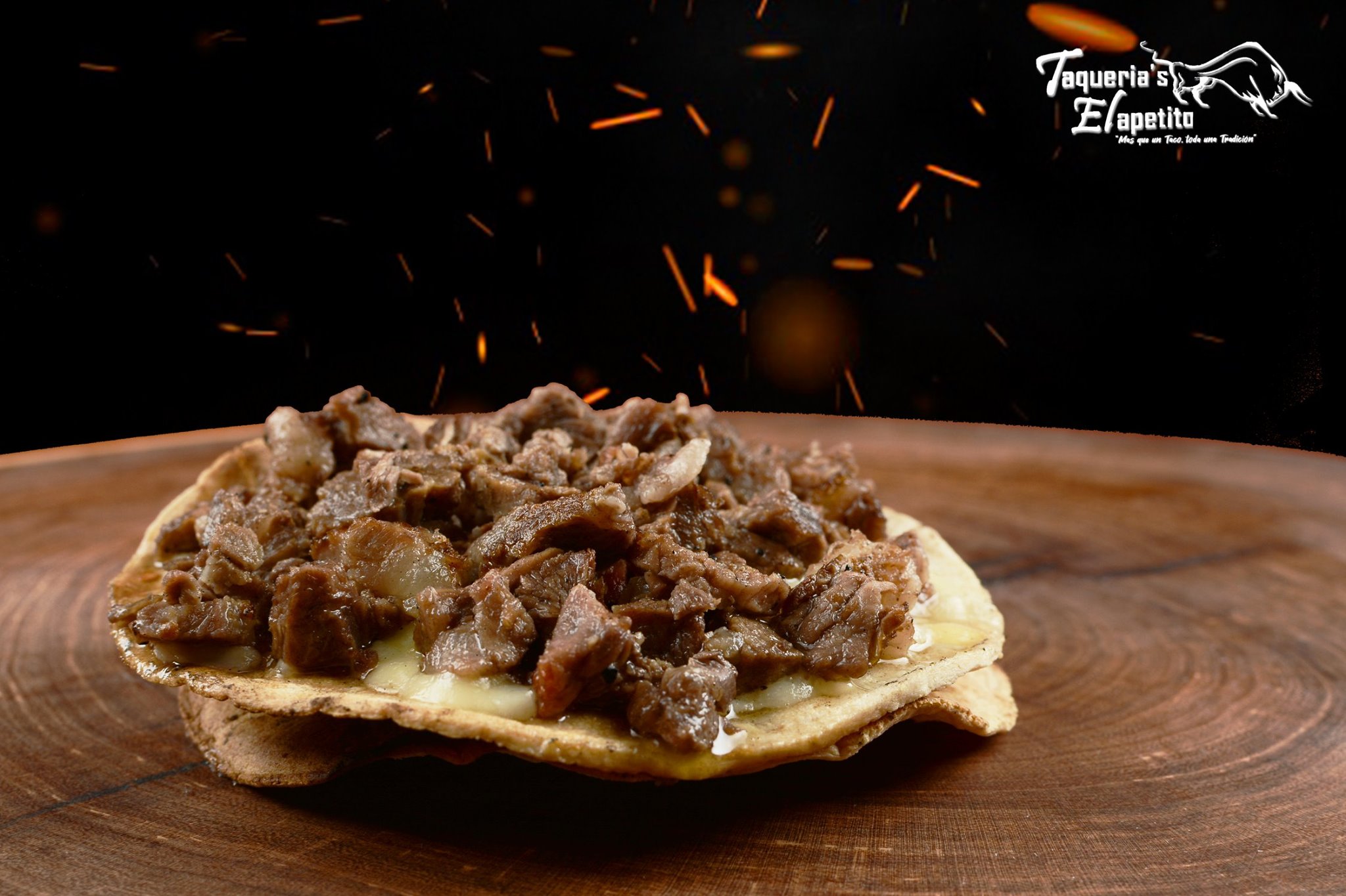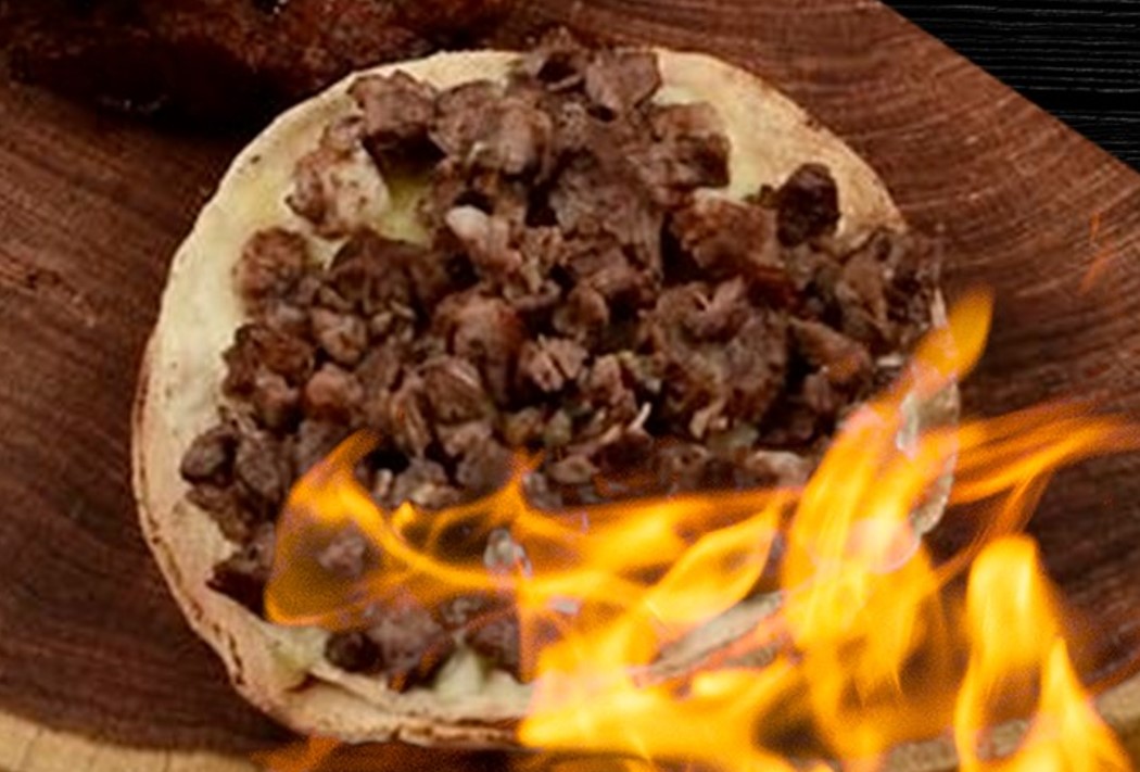 Tortilla de maíz doradita, queso asadero y carne asada. Incluye salsa, guacamole y verdura.