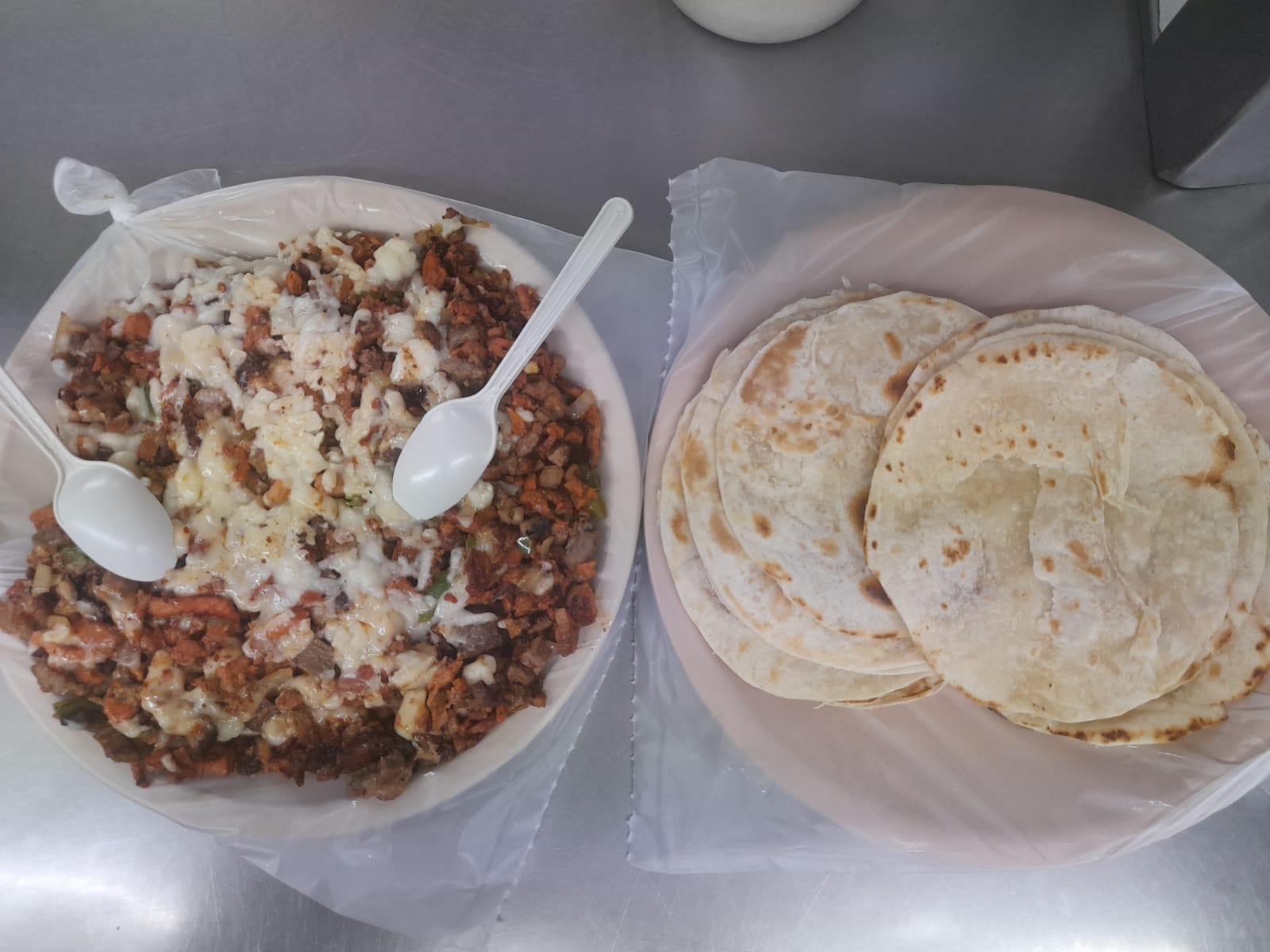 Con carne, queso asadero, chile morrón y cebolla, incluye: salsa, guacamole y verdura, elige tu tortilla favorita.