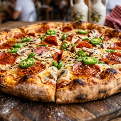 Receta especial con pepperoni, champiñones y el toque fresco del chile verde.