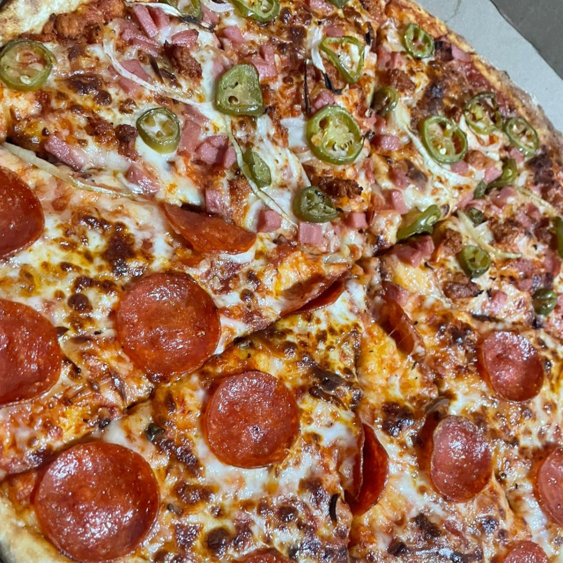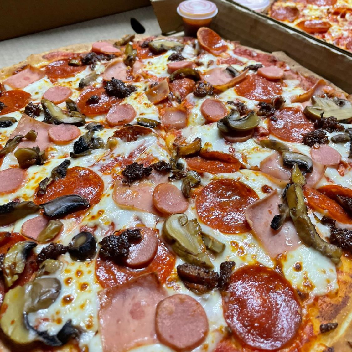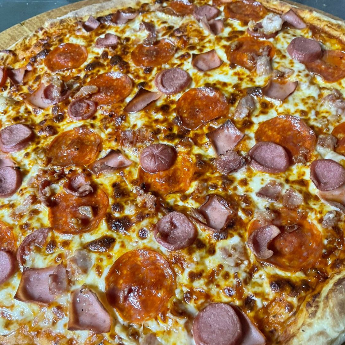 Completa especialidad que incluye pepperoni, jamón, salchicha, champiñones y chilorio.