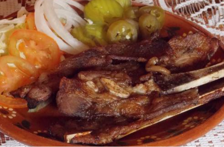 bañadas en salsa BBQ y acompañada de tortillas de maíz, salsa y cebollas asadas