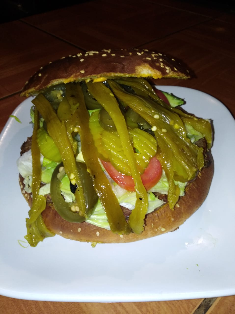 220g. De carne,queso,lechuga,tomate, pepinillos, cebolla y chiles