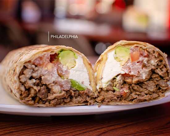 Carne a la plancha, queso, tomate, aguacate, mayonesa y philadelphia.