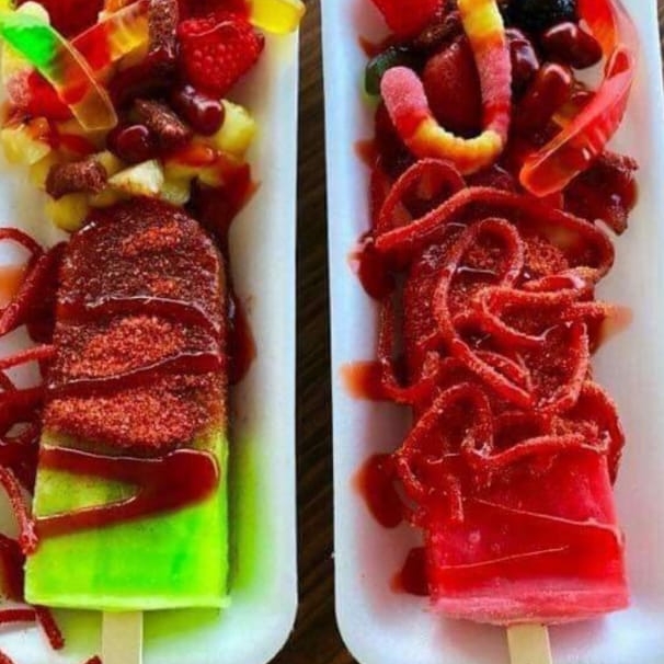 paleta helada,gomitas,serpentina,chamoy tajin