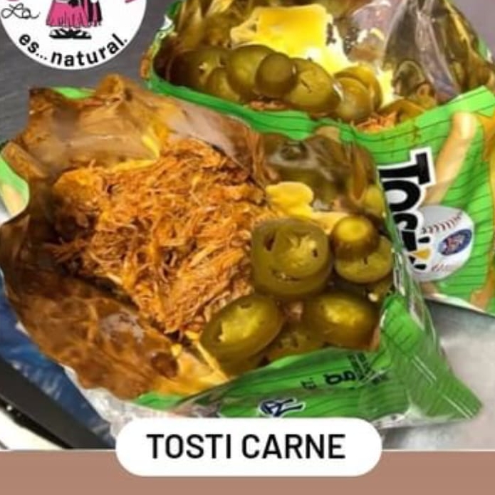 Tostitos,pierna,chile jalapeño, queso en polvo y queso amarillo