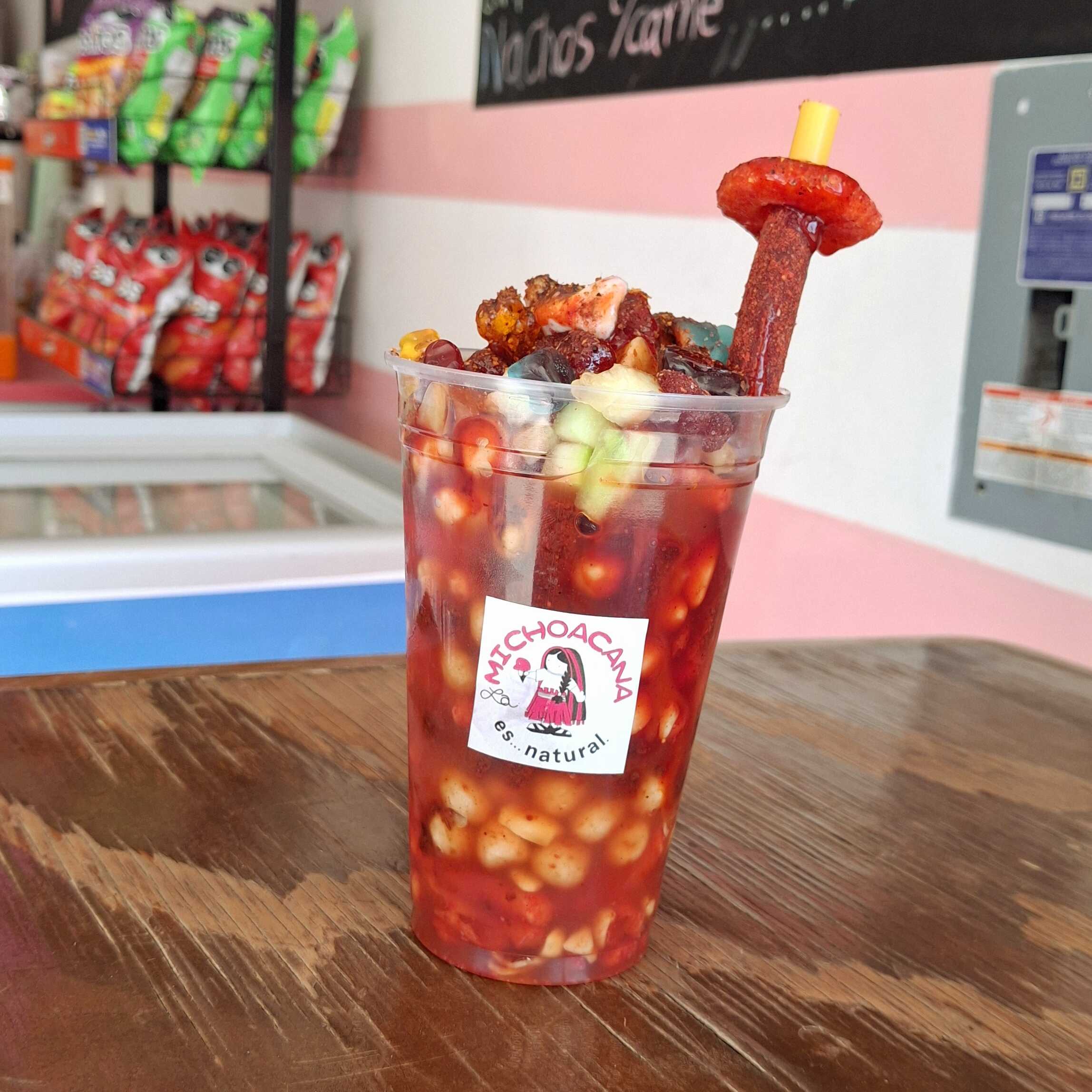 churro,cacahuate,rielito,pepino,tarugo,salseado,gomitas,serpentinas y clamato