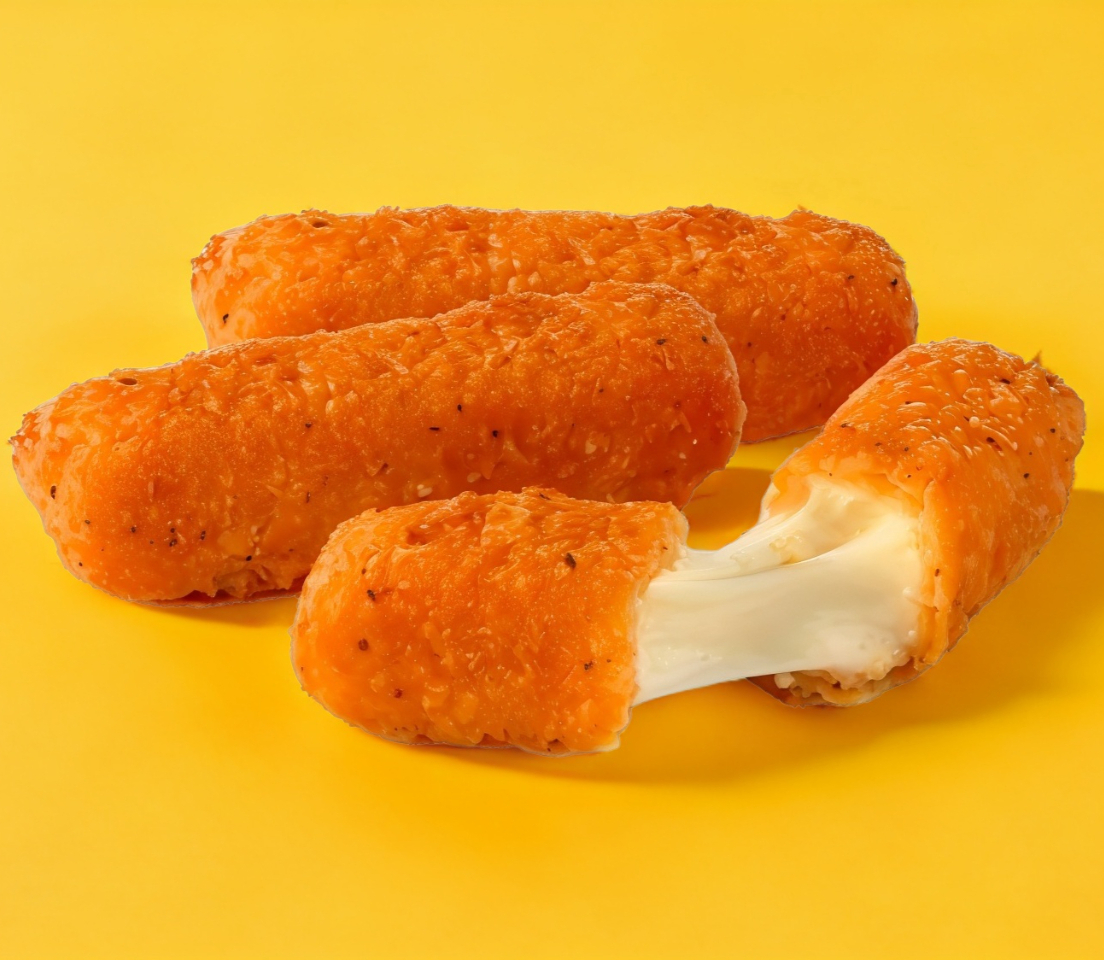 6 Dedos de queso mozzarella empanizados acompañados de aderezo o salsa.
