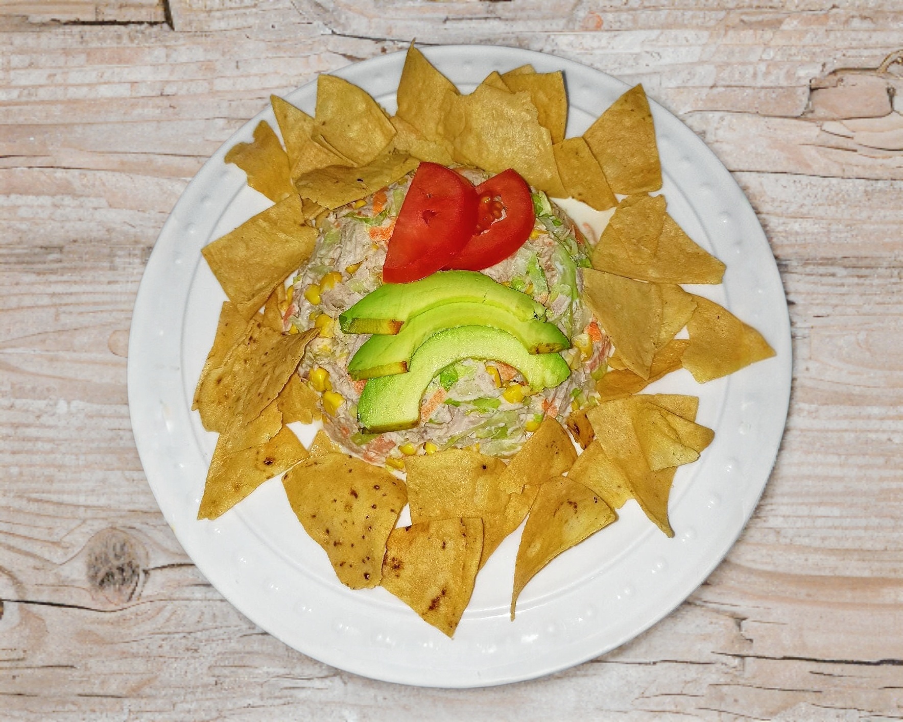 Guacamole, papa al horno, rajas, cebolla t tomate asado.