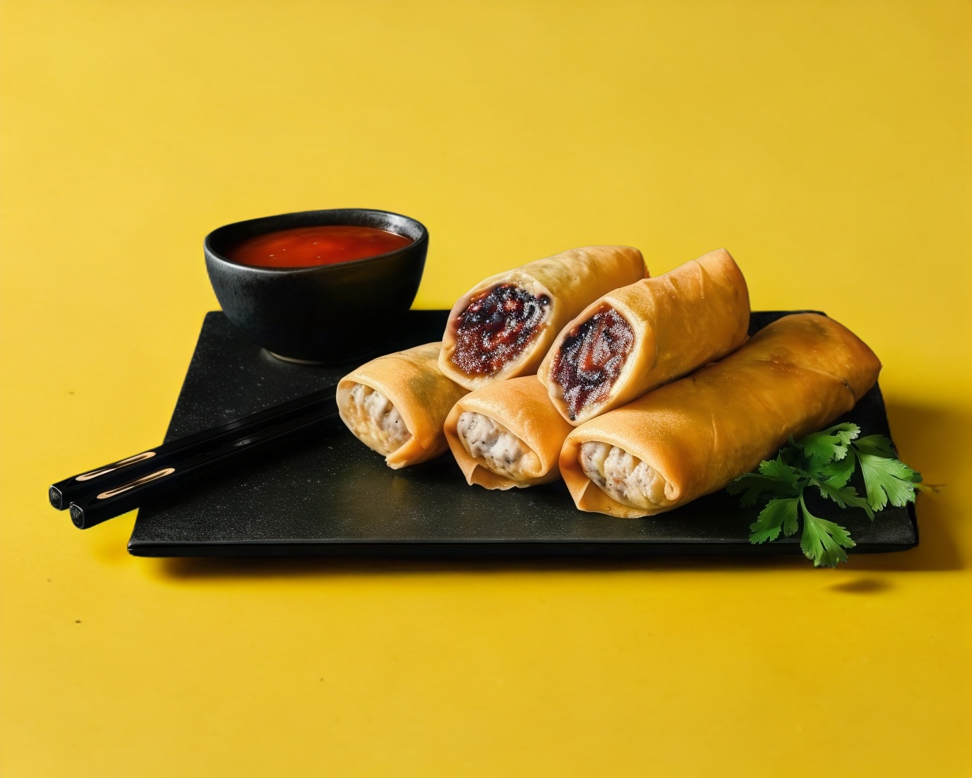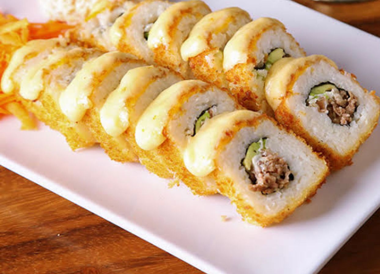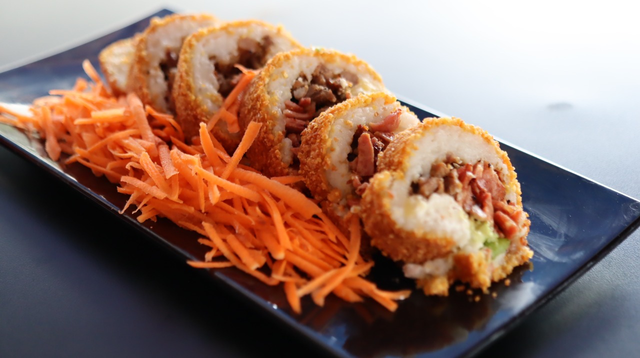 Aguacate, philadelphia, res, pollo, bañado en salsa barbecue.