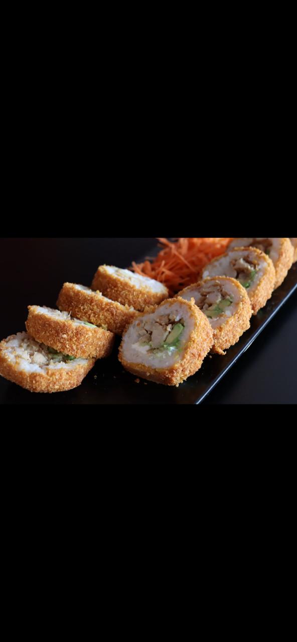 Aguacate, philadelphia, pollo, tocino, por fuera queso chihuahua.