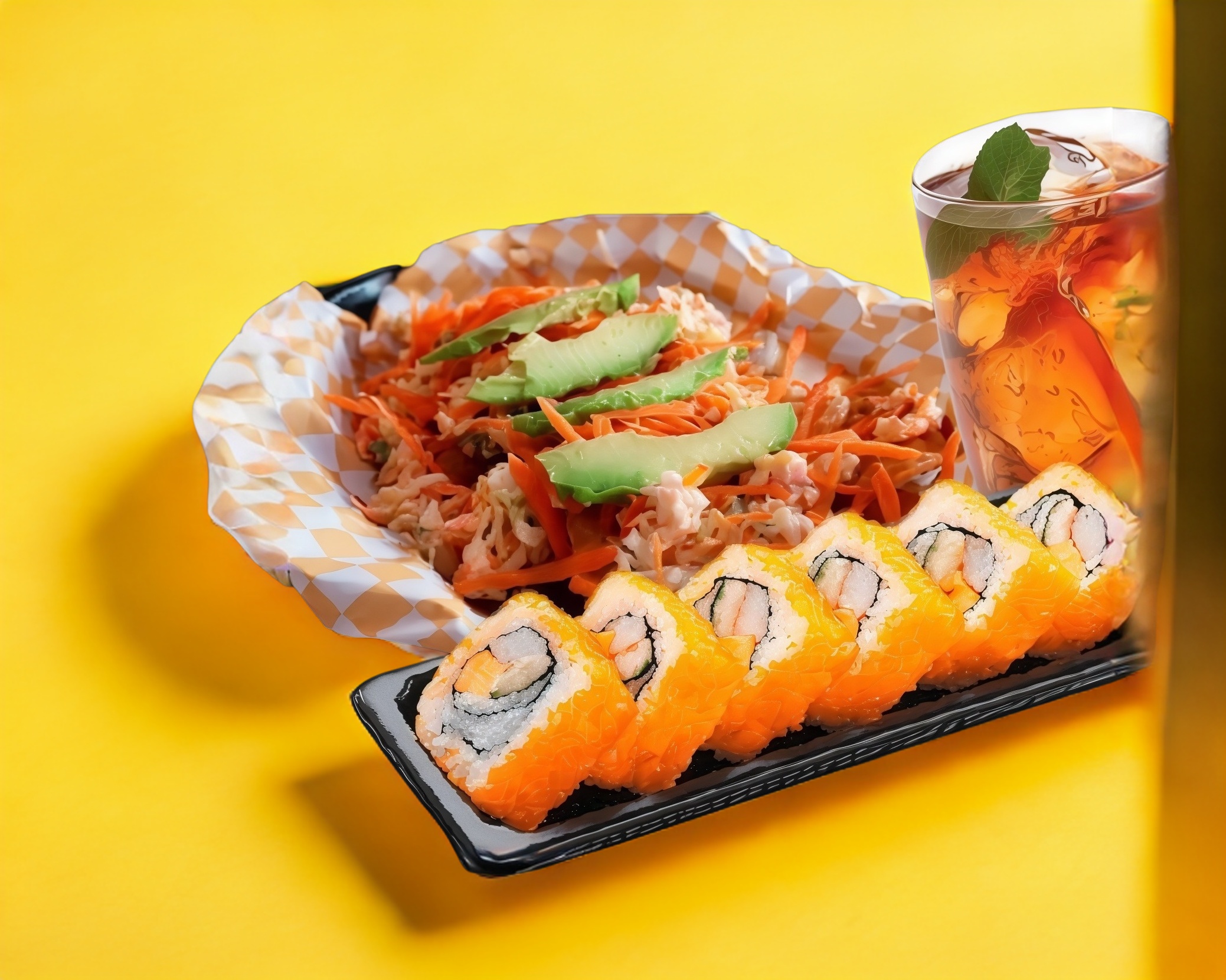 1/2 sushi a elegir, 1 tostisurimi, 1 litro de té.