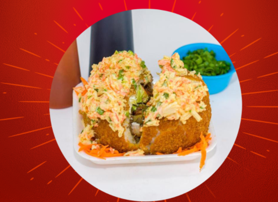 Aguacate, queso philadelphia, camarón, aderezo y volcano arriba.
