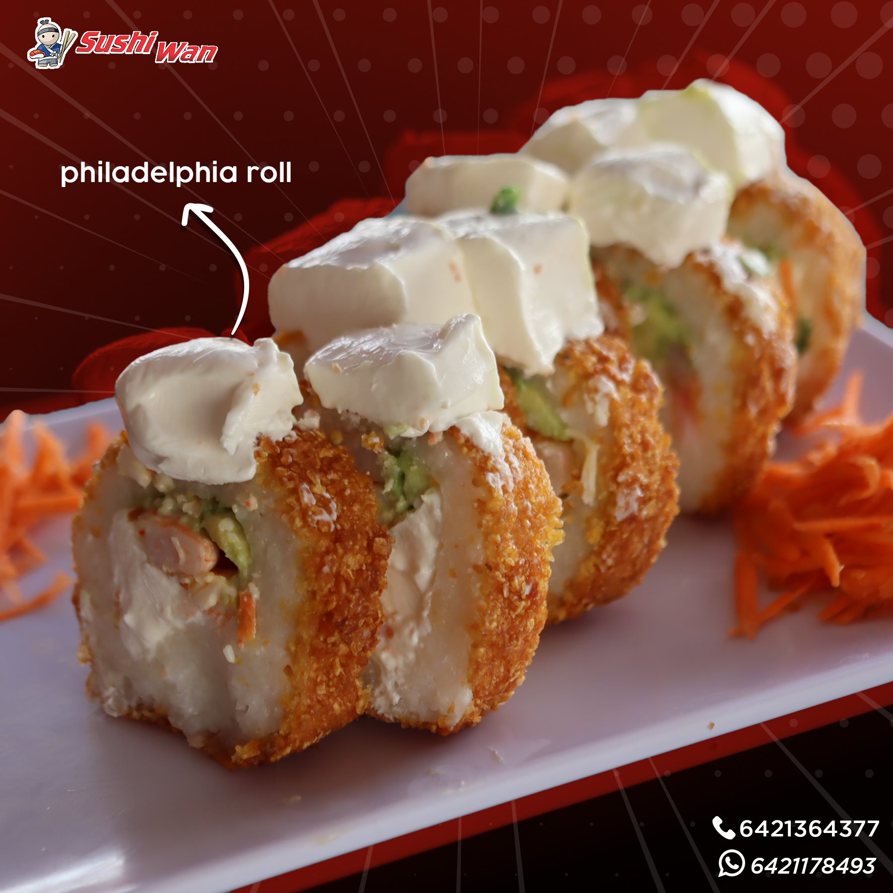 Philadelphia, aguacate, res, pollo y camarón.