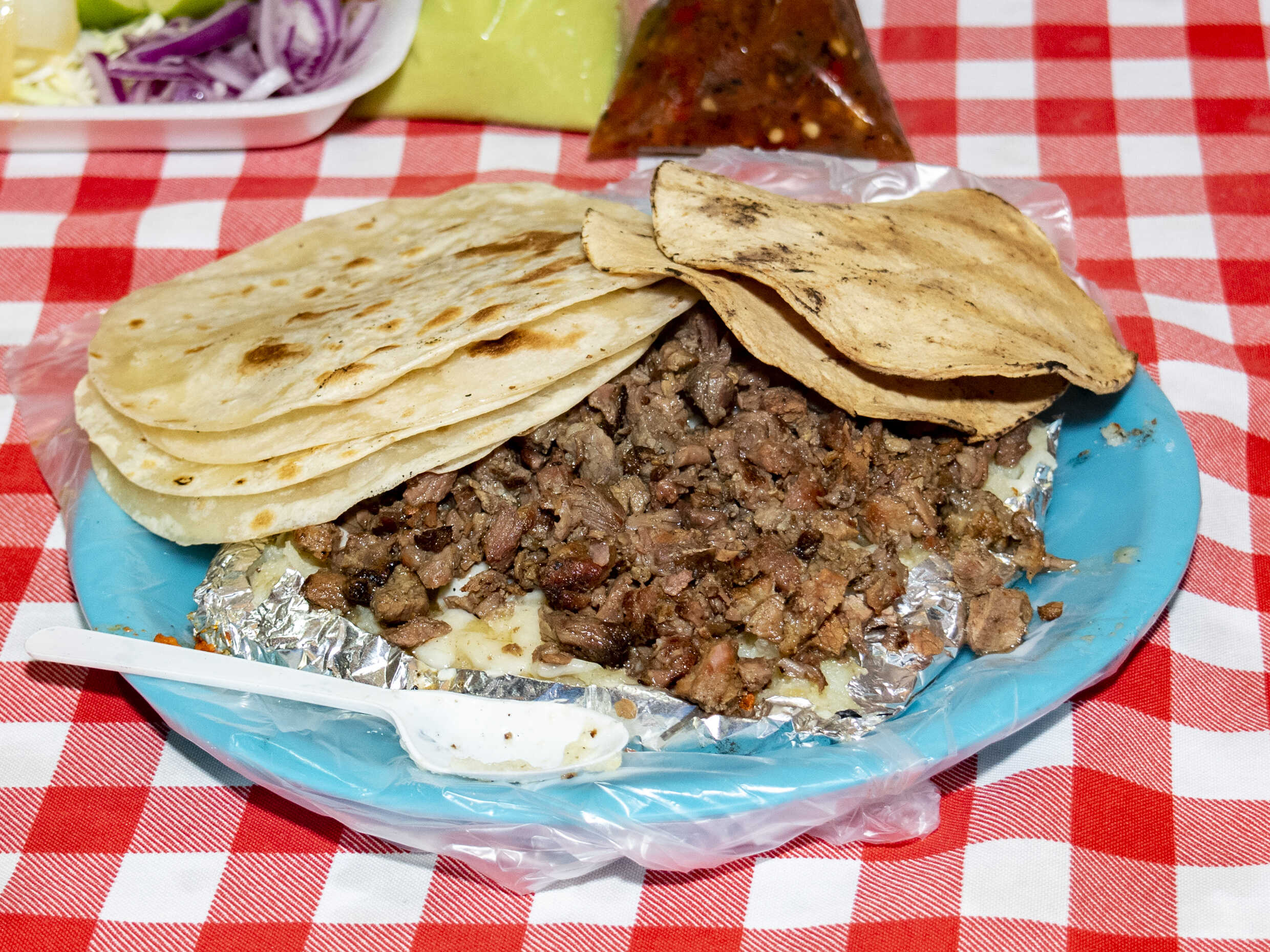 Papa con Carne Asada