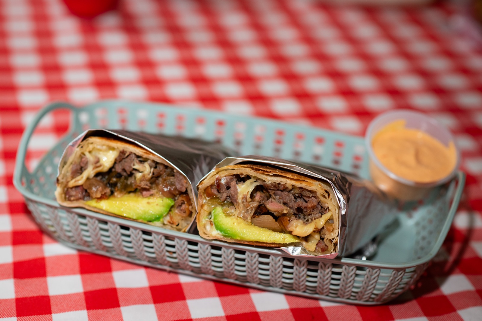 Papa asada, queso gratinado, carne asada y salchicha asada. Incluye tortillas, salsa, verdura y guacamole.