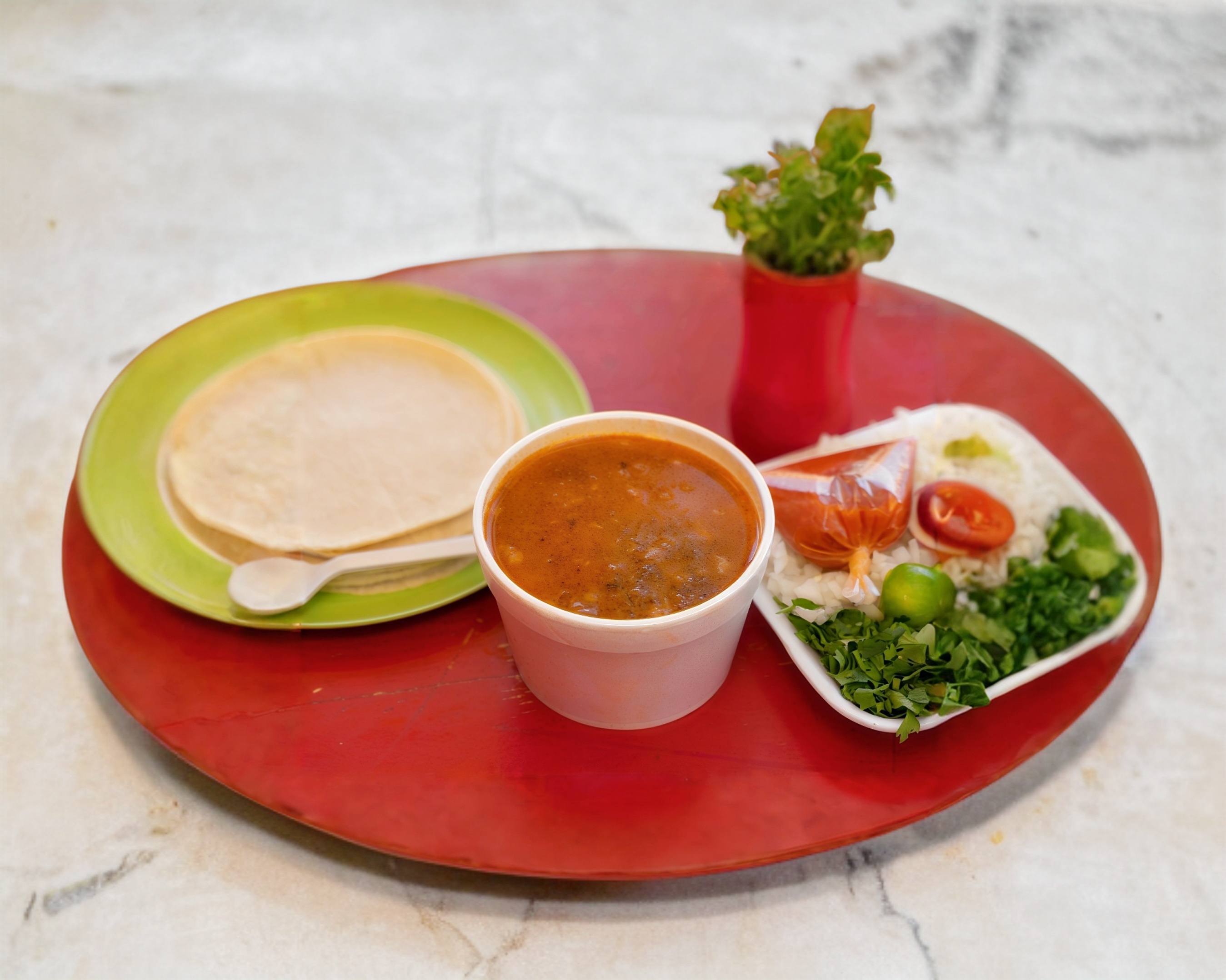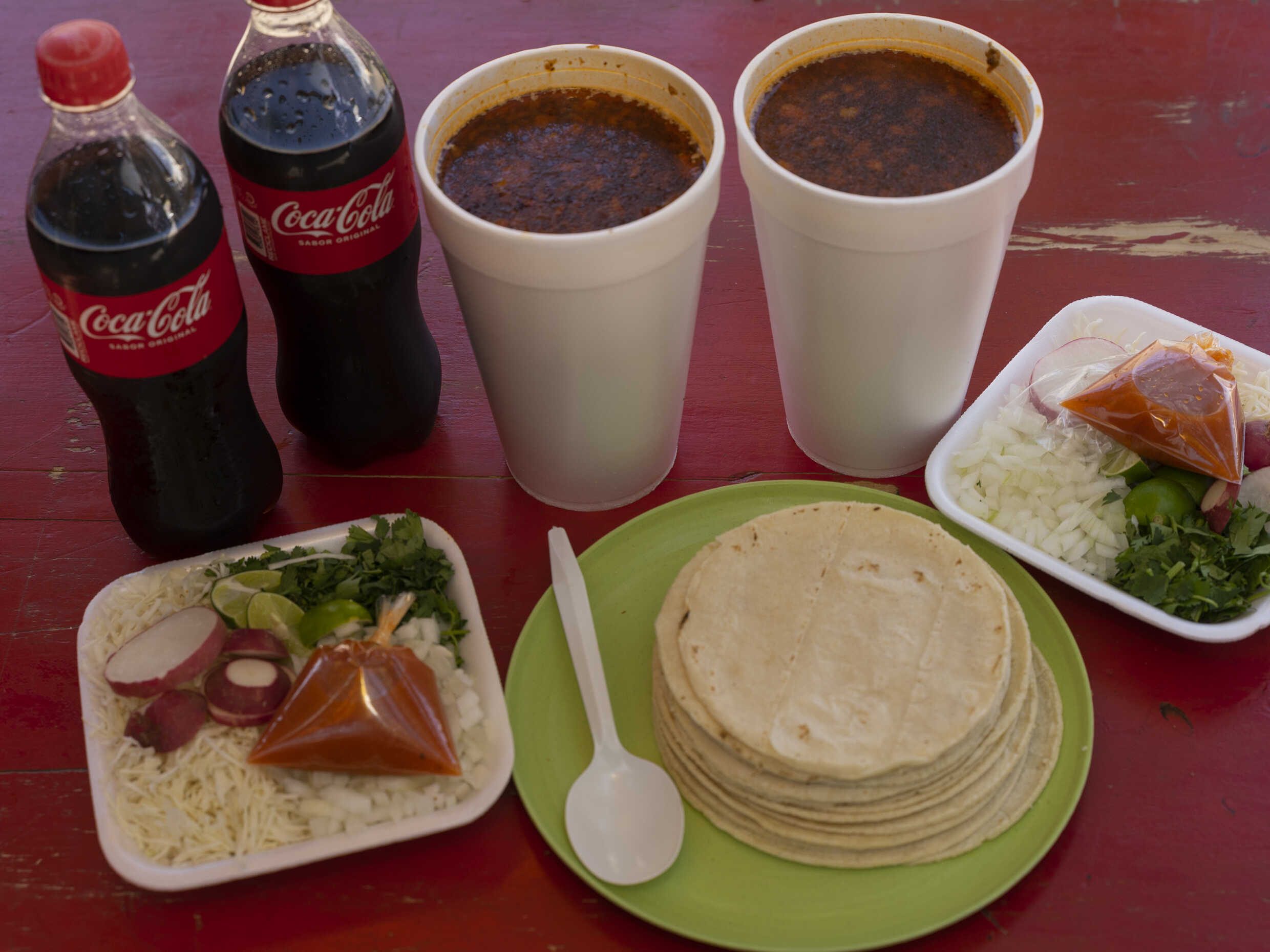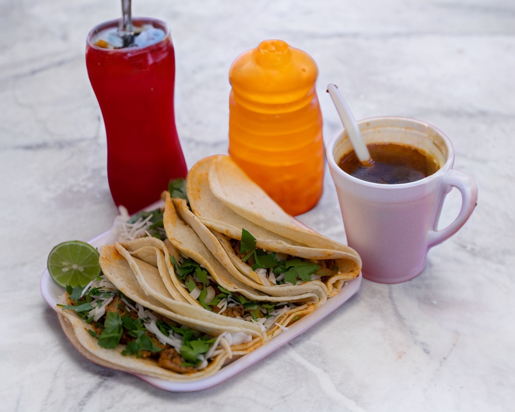 5 tacos de barbacoa + 1/2 lt jugo vichi