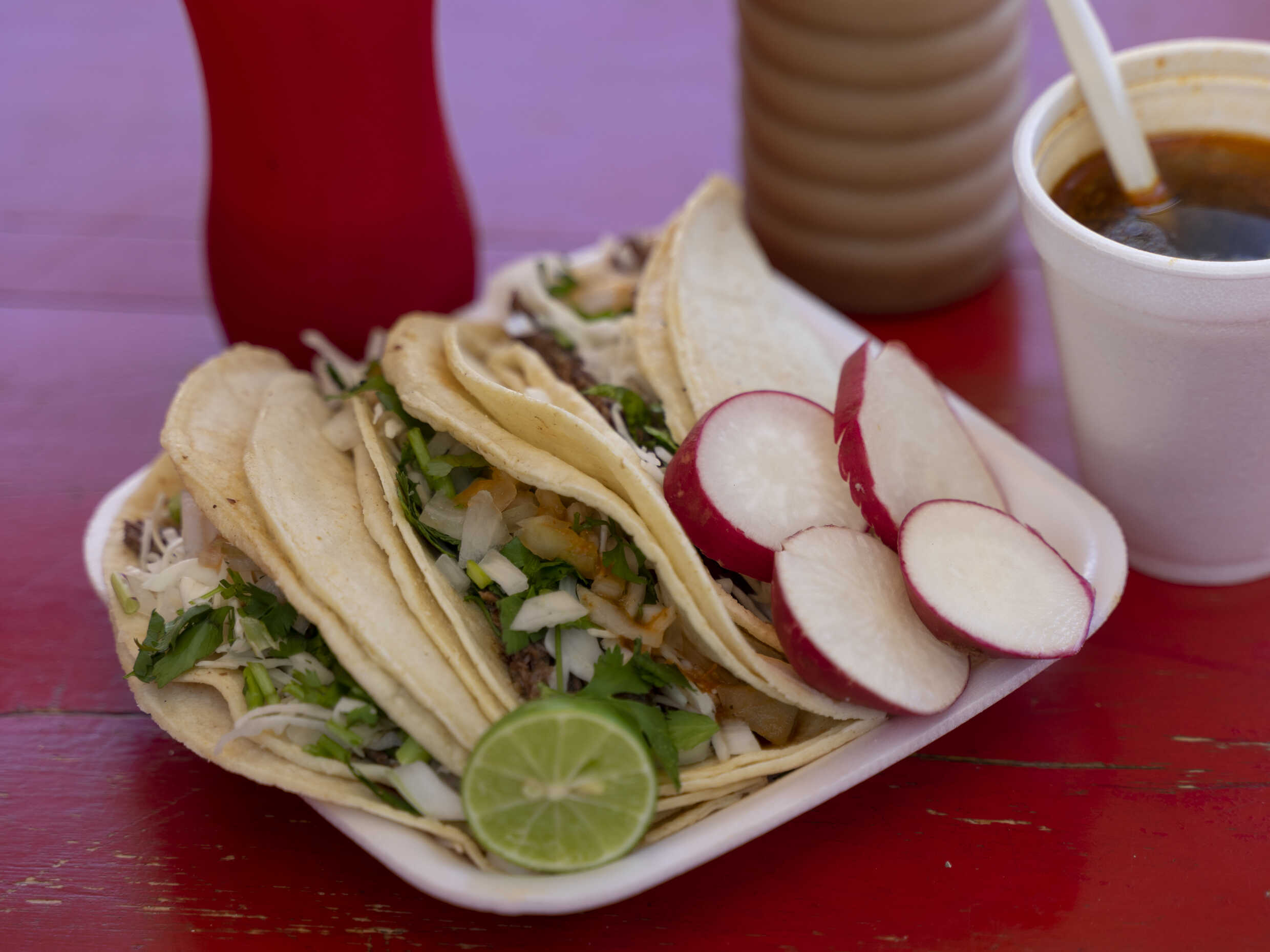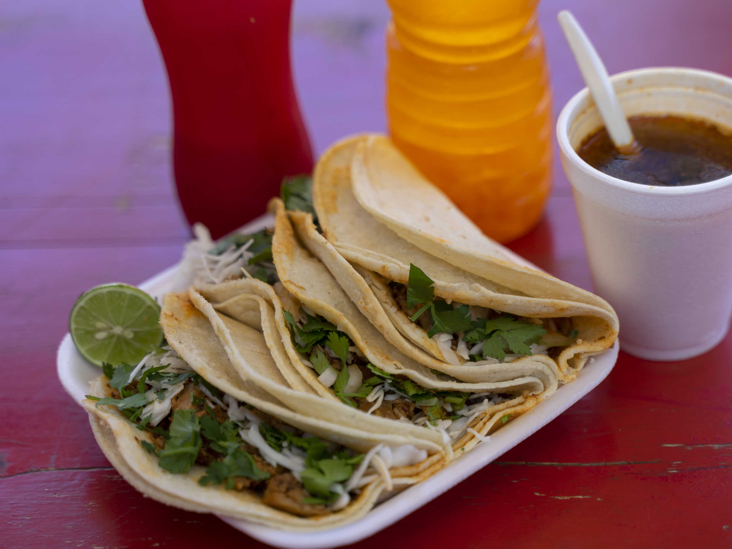 3 Tacos, vichi, soda 600 ml.