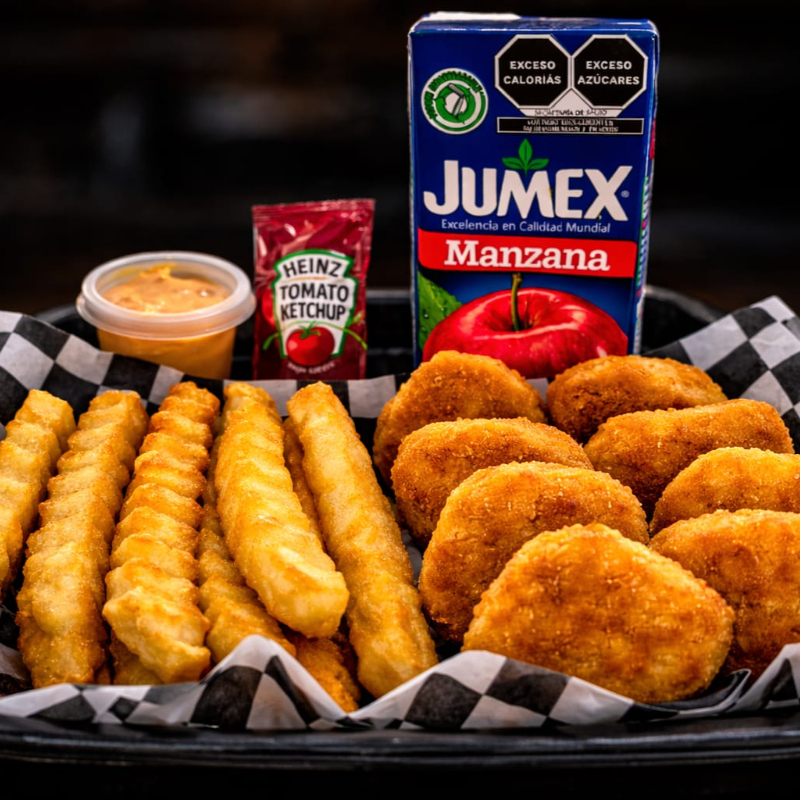 8 nuggets con papas fritas y 1 jugo de 250ml.