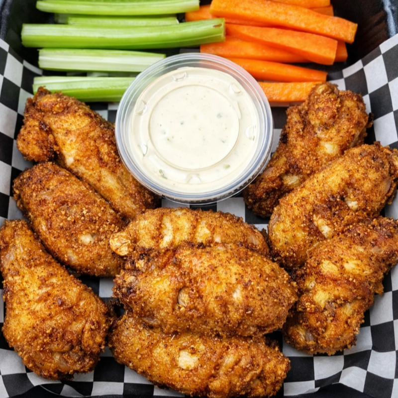 300gr de alitas en la salsa de tu elección, incluye zanahoria, apio y 1 aderezo ranch.