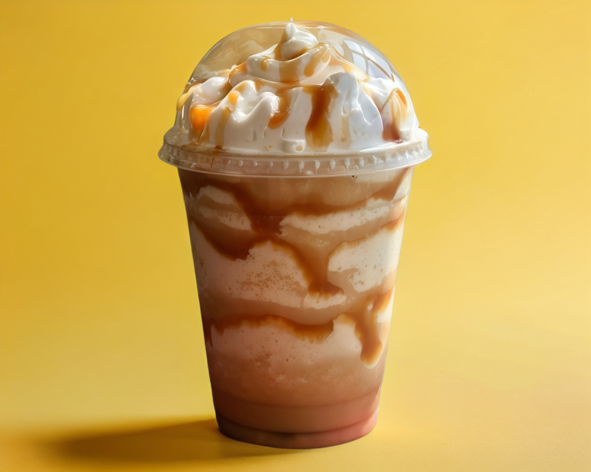 Café con leche frío con saborizante de caramelo