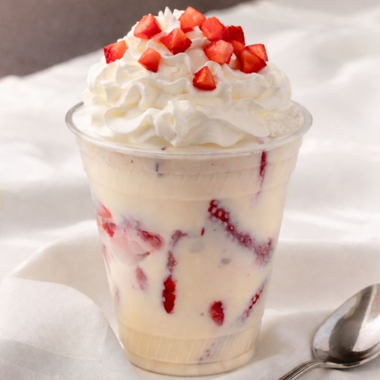 16 oz Contiene fresa y una crema elaborada muy cremosa acompañalo con el topping que gustes