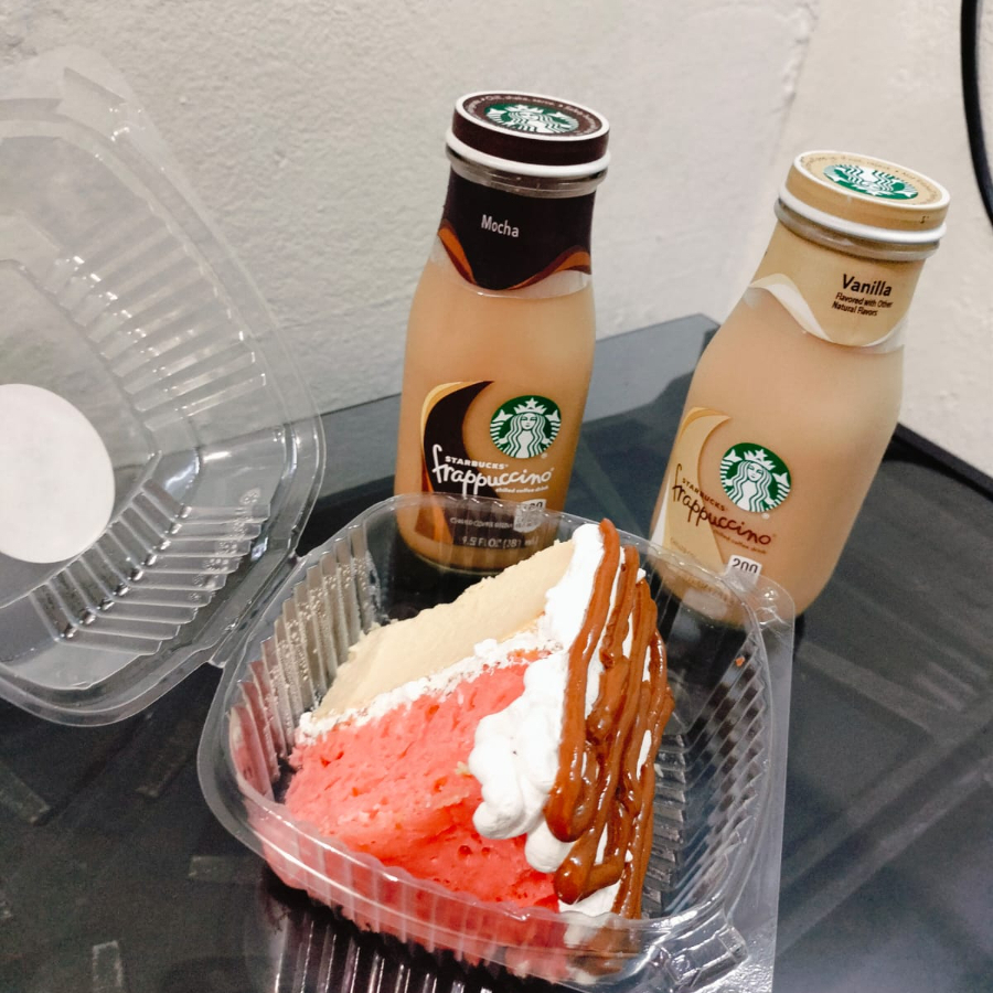 Rebanada suave pan de fresa bañado en tres leches, combinado con cheesecake cremoso y decorado con chantilly y dulce de leche. Acompañada de un café tipo starbucks