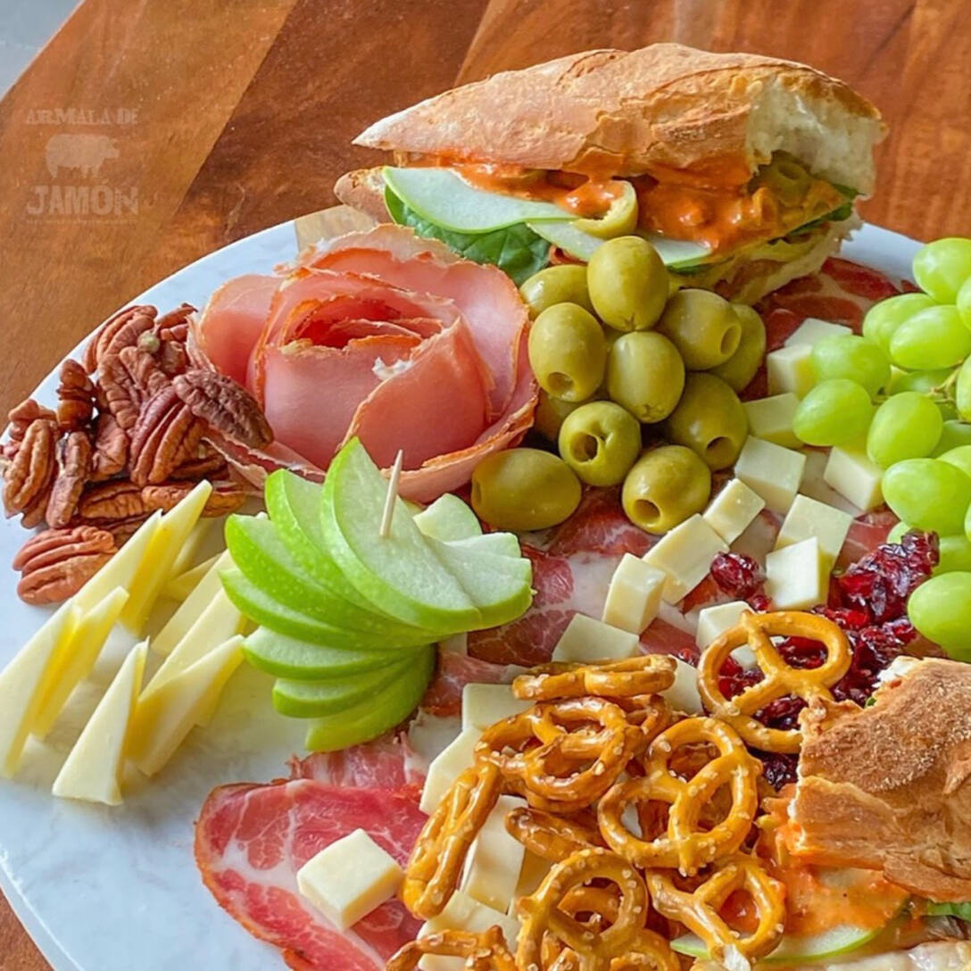 Un viaje por la campiña italiana: jamón cocido de pierna sobre una cama de queso stracciatella, con jitomate fresco, arúgula y aceitunas, realzadas con aceite de oliva extra virgen y una reducción de balsámico artesanal. Cremosa, aromática y profundamente italiana.