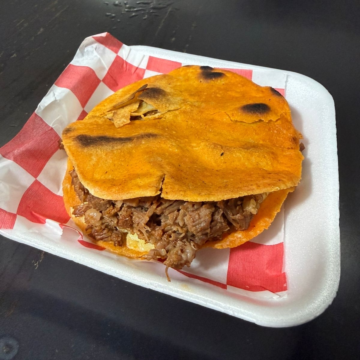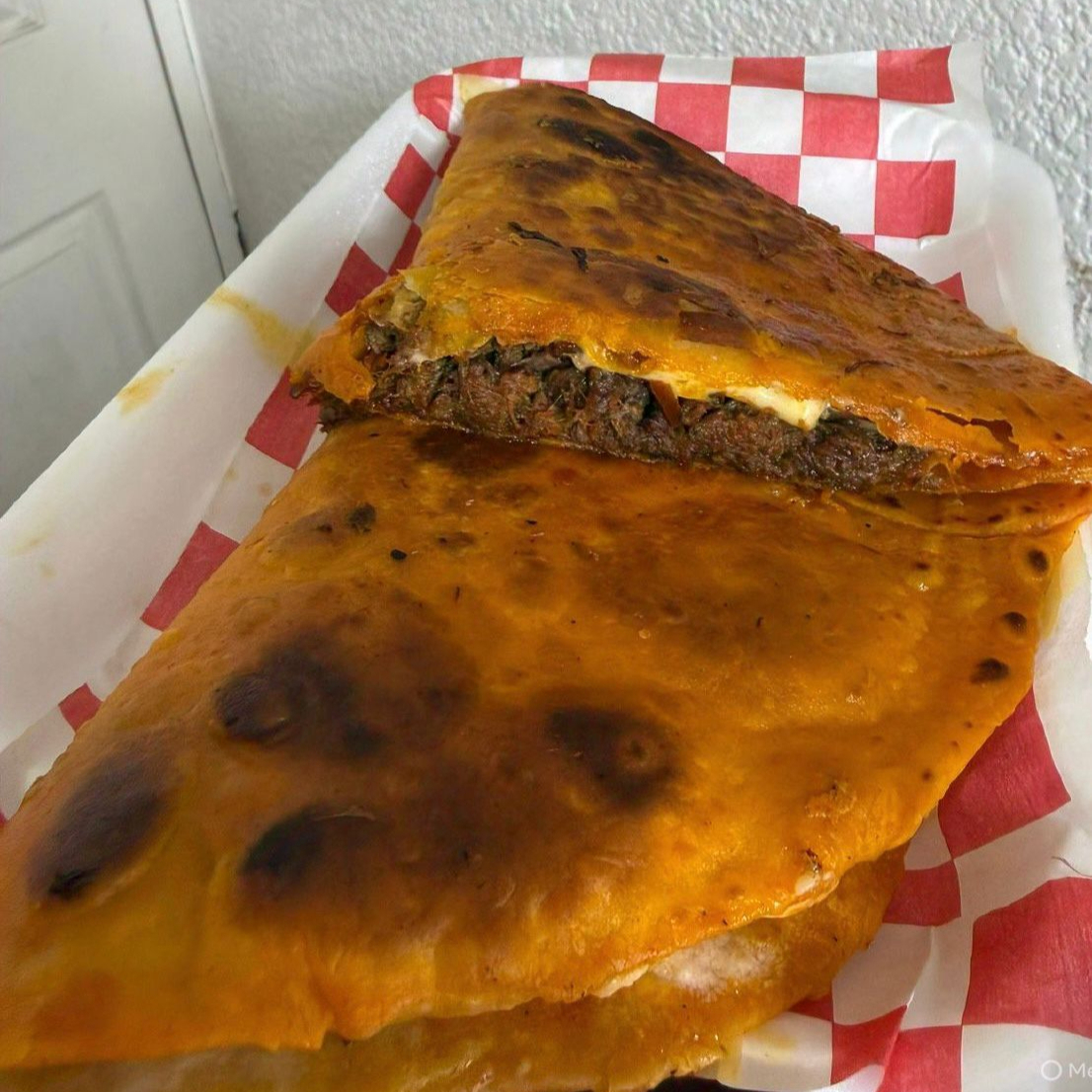 Tortilla de harina recién echa, carne y queso doraditos en una fusion de sabores