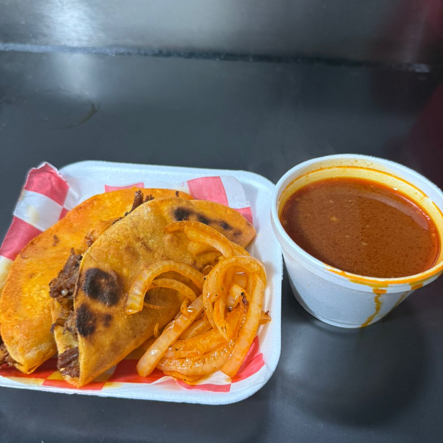 LONCHE DE BIRRIA DORADITO, ACOMPAÑDO DE CEBOLLA CARAMELIZADA