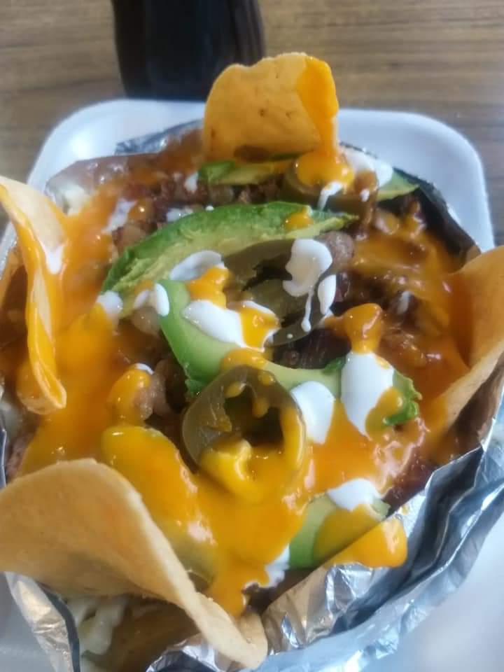 Preparada con frijoles refritos,queso asadero,carne de su agrado,tortilla frita de mais tostada,crema,lechuga,tomate,cebolla y queso cheddar.