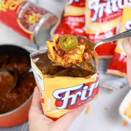 (Salchicha americana, frijoles con carne y queso amarillo derretido)