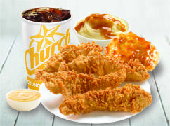 4 Tenders + Complemento Mediano (6oz) + Refresco Mediano (16oz) + Biscuit + Aderezo.