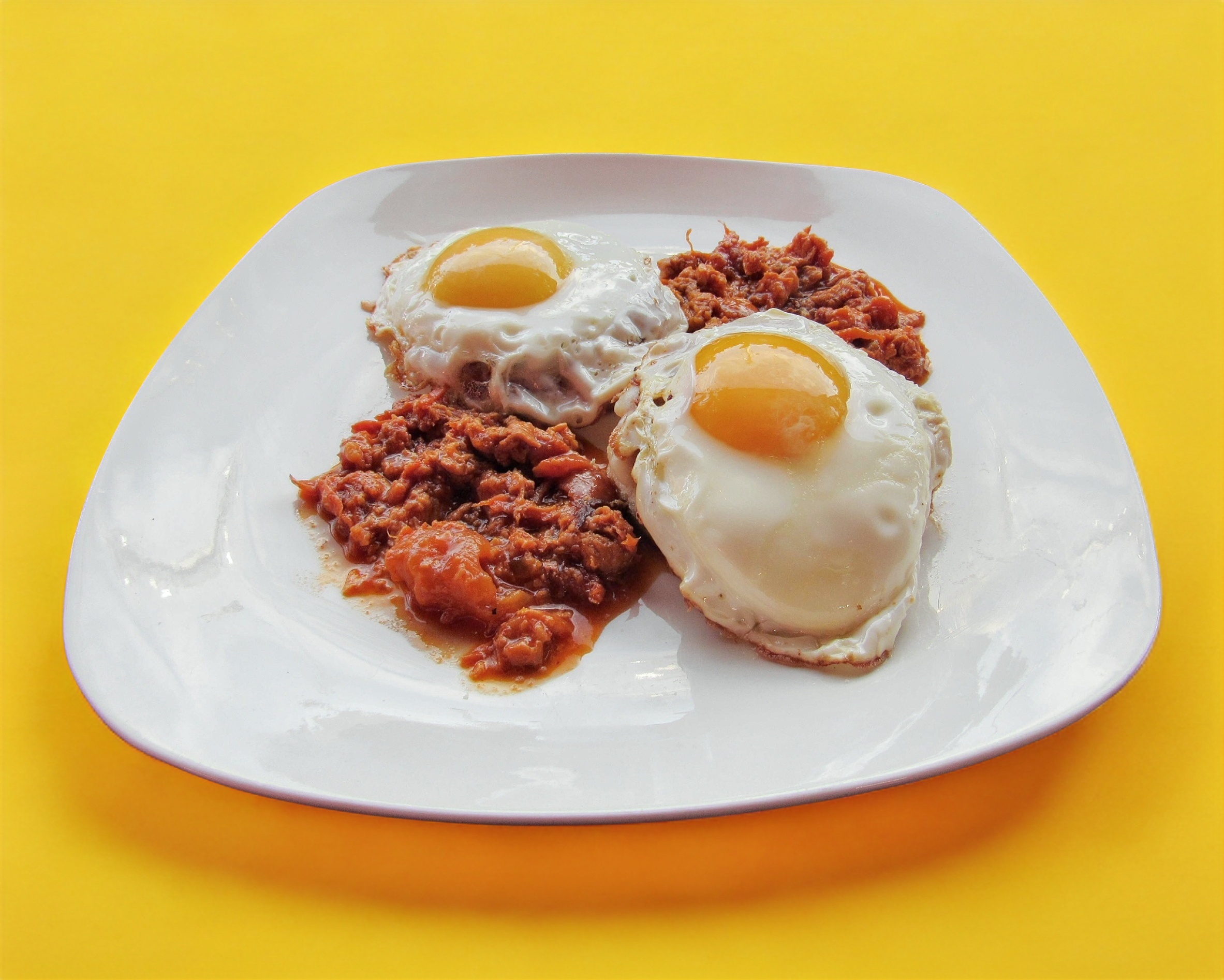 Con jamón, queso y huevo estrellado.