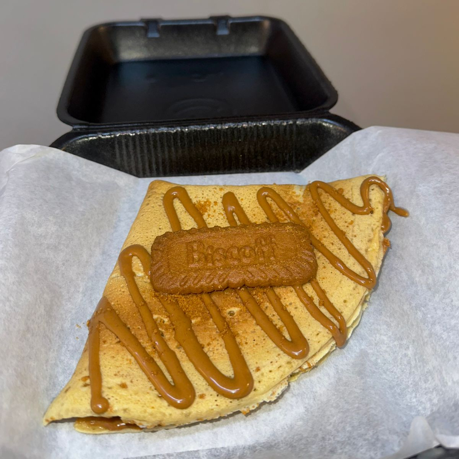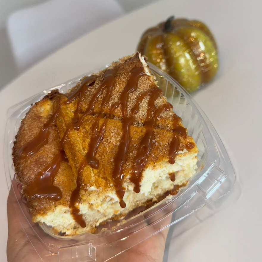 15 piezas de mini hot cakes acompañados de dos toppings a elegir y miel de maple