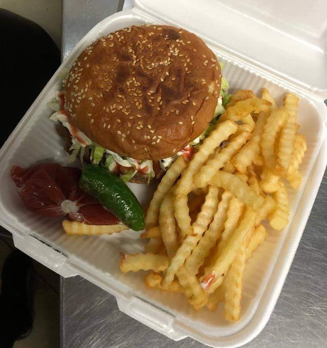 Jamón, queso blanco, tomate, cebolla, lechuga, mayonesa y mostaza incluye papas fritas.