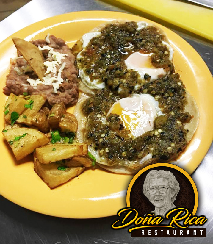 Acompañado de frijoles y papas, incluye tortillas de maíz y salsa.